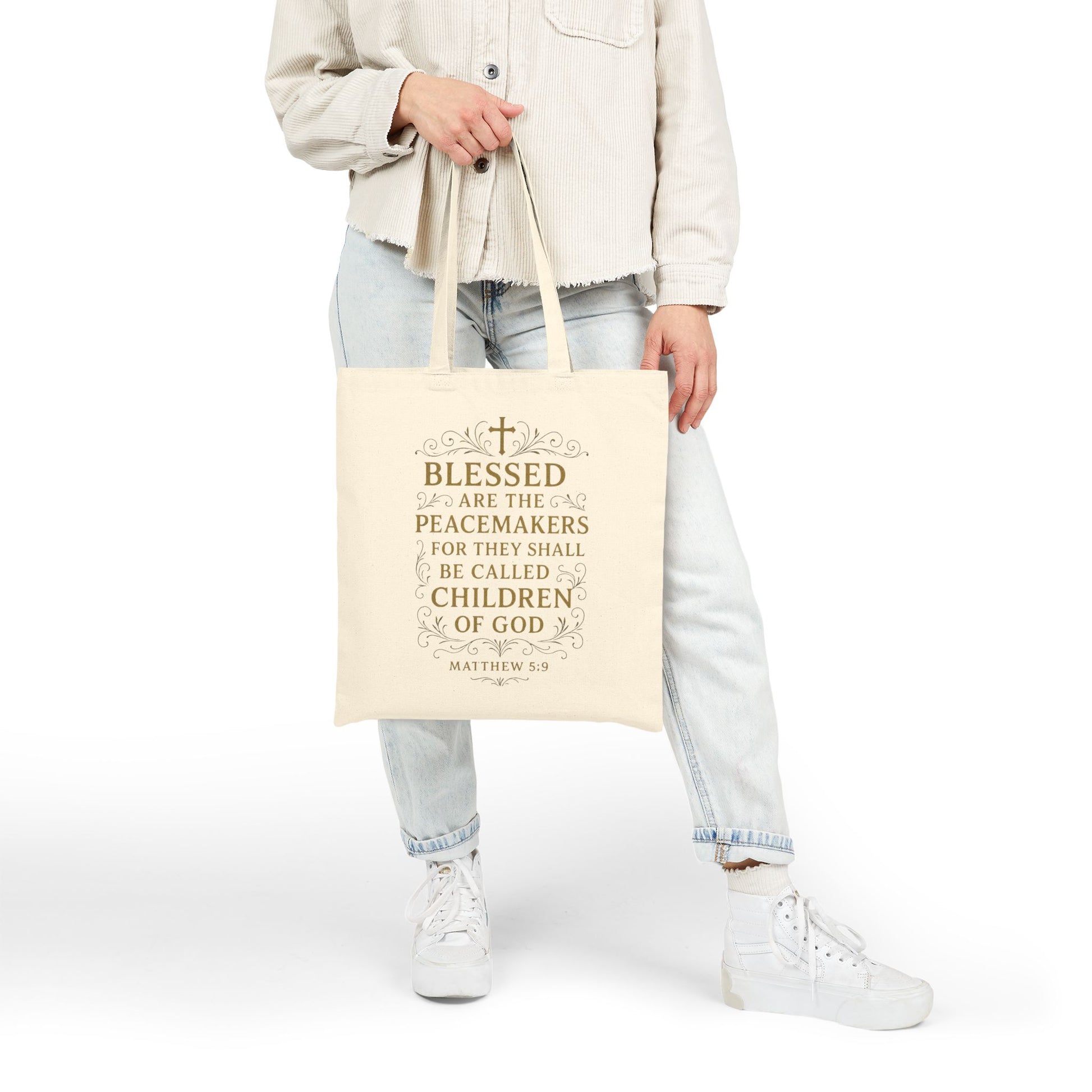 Blessed Are the Peacemakers Cotton Canvas Tote Bag — Faith-Based Inspirational Carryall