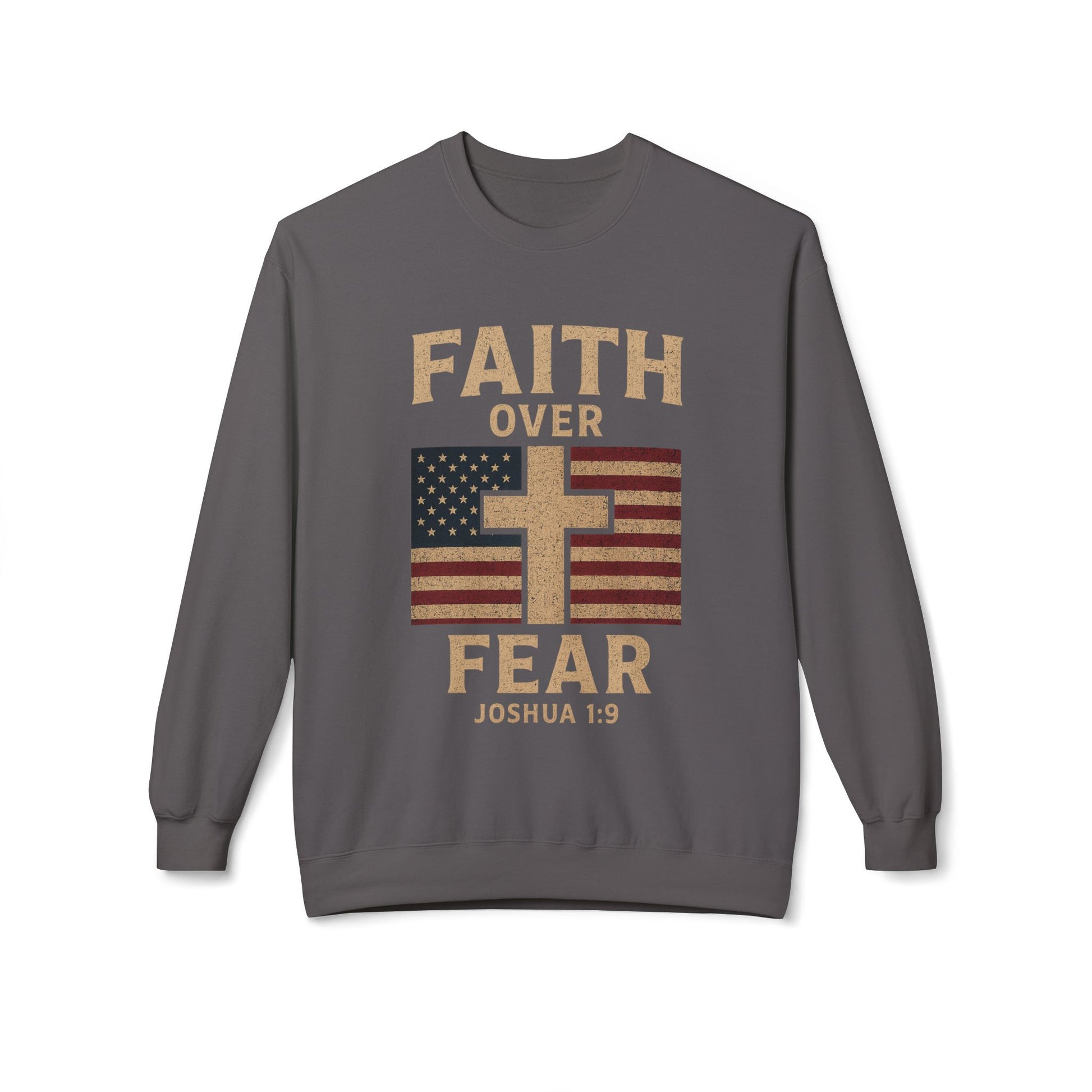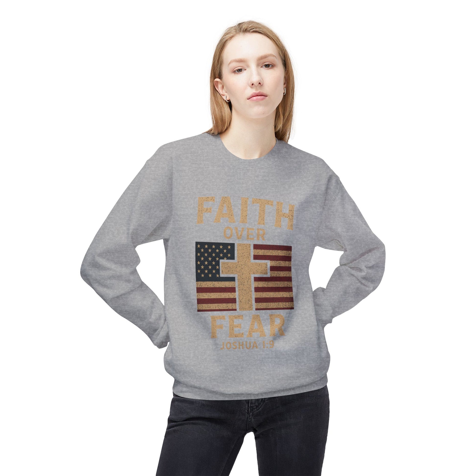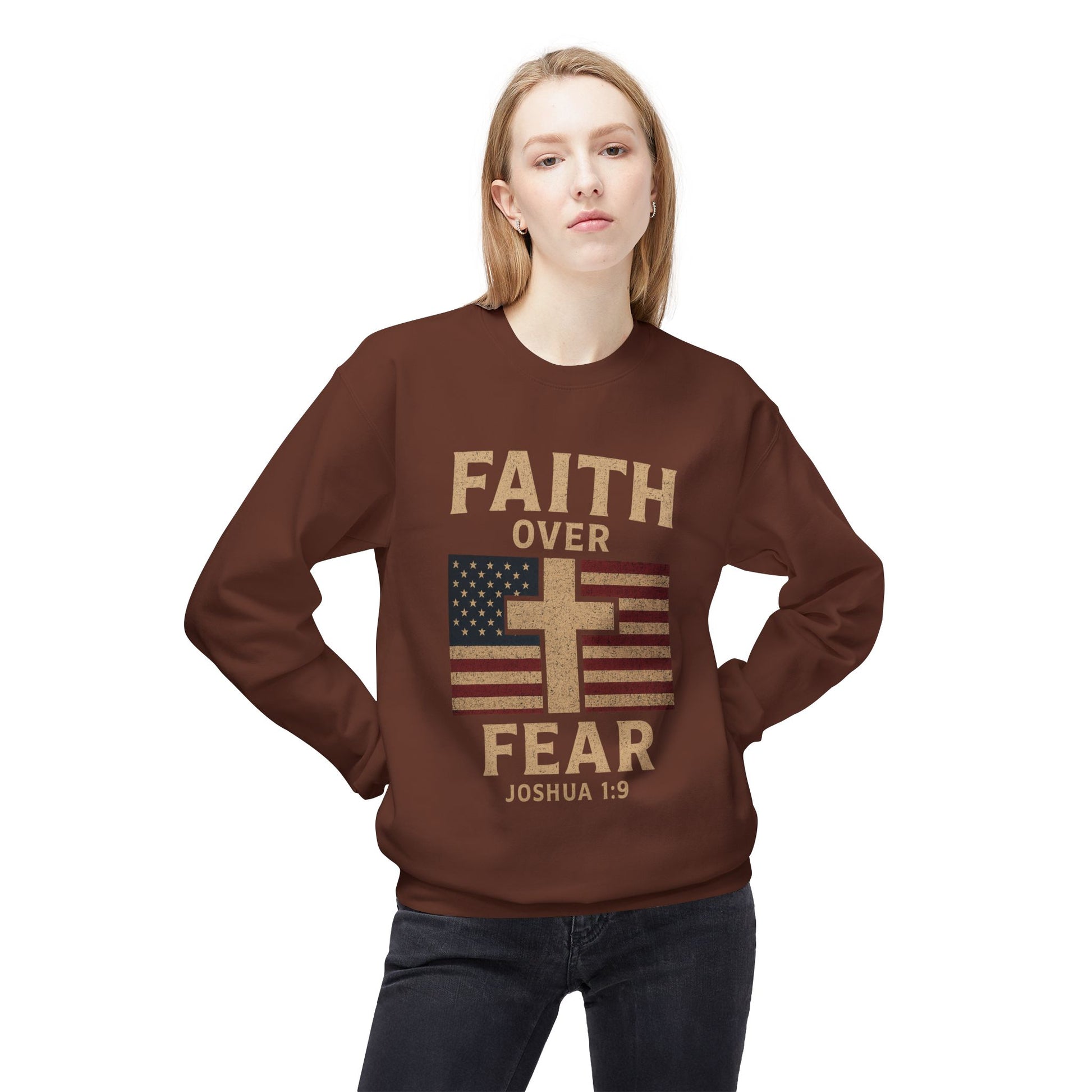 This Faith Over Fear Sweatshirt with a Christian Cross and American Flag design exudes a sense of strength and patriotism. It is perfect for individuals looking to showcase their faith and love for their country. Ideal for religious holidays, patriotic celebrations, and everyday wear for Christians and Americans.