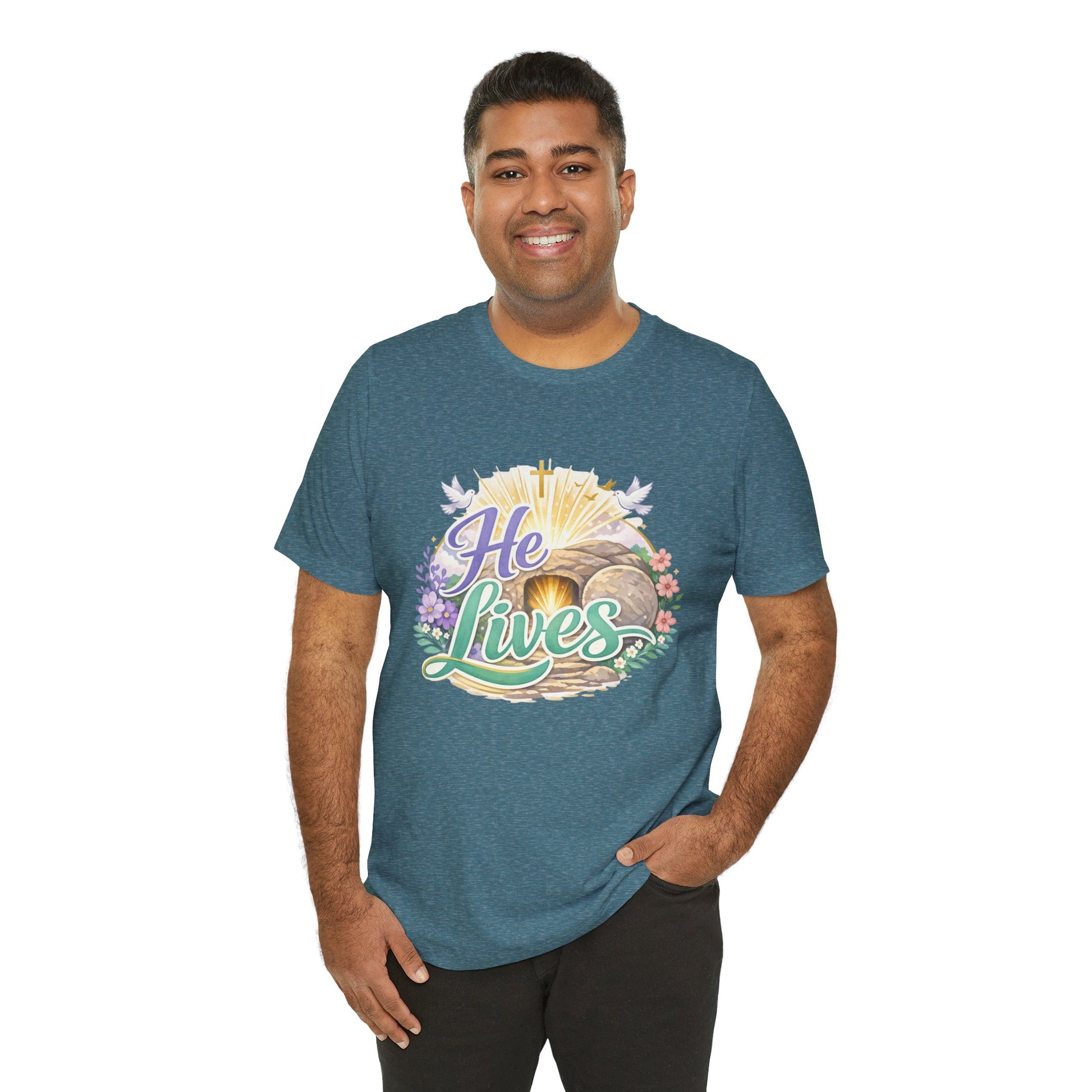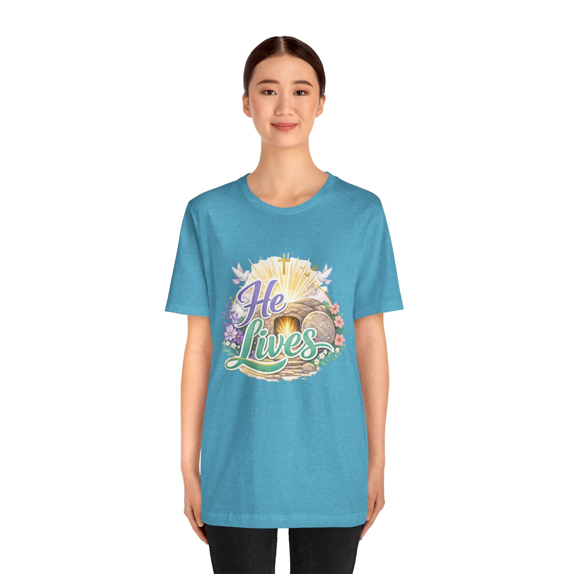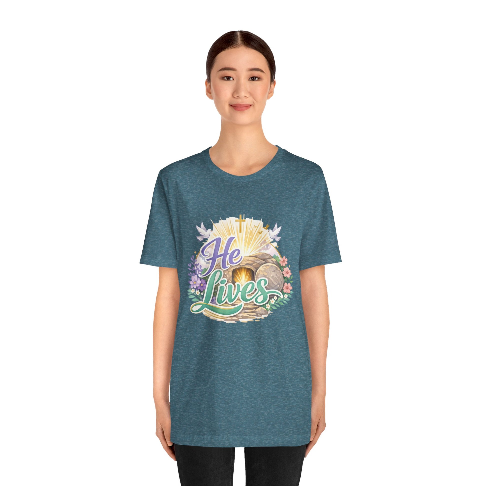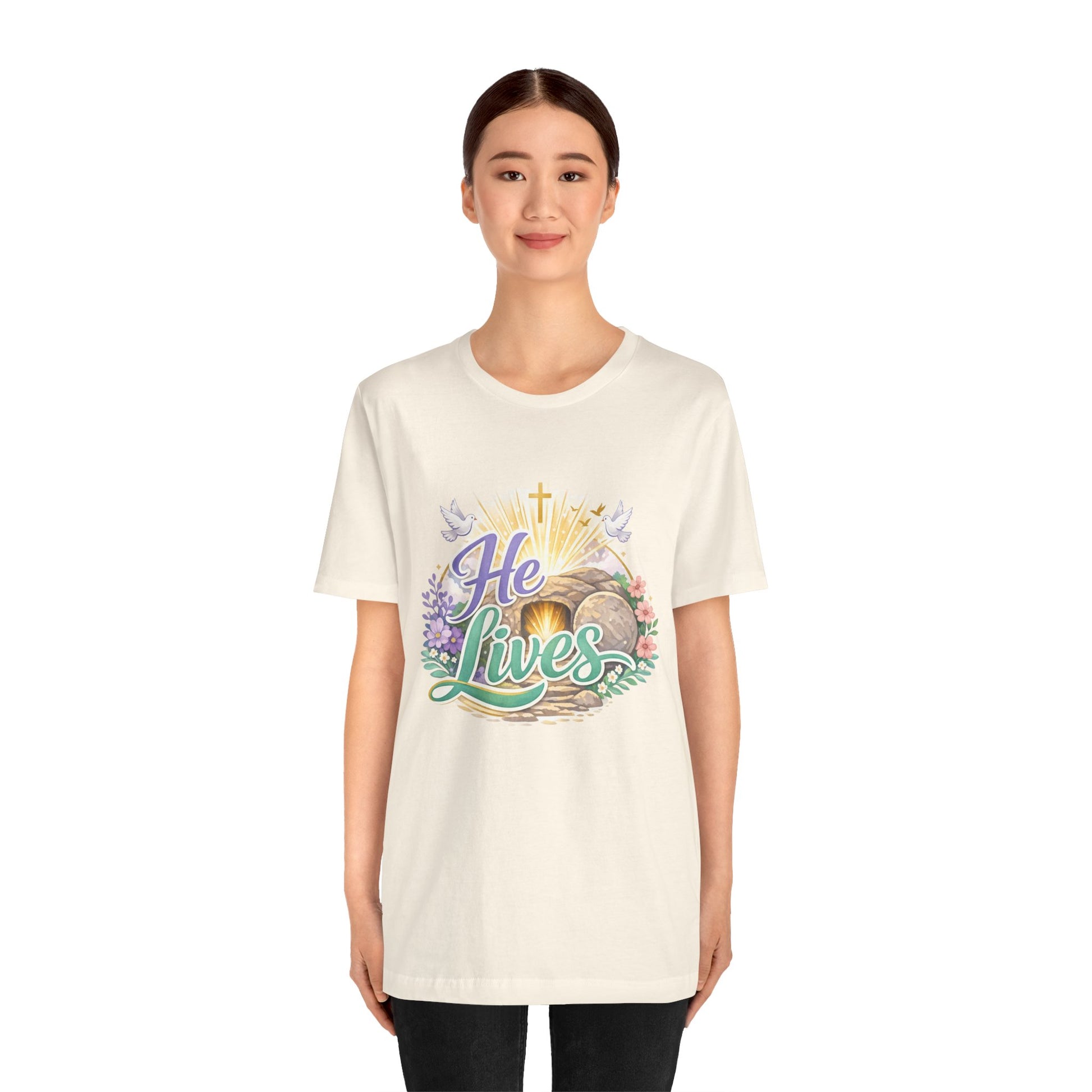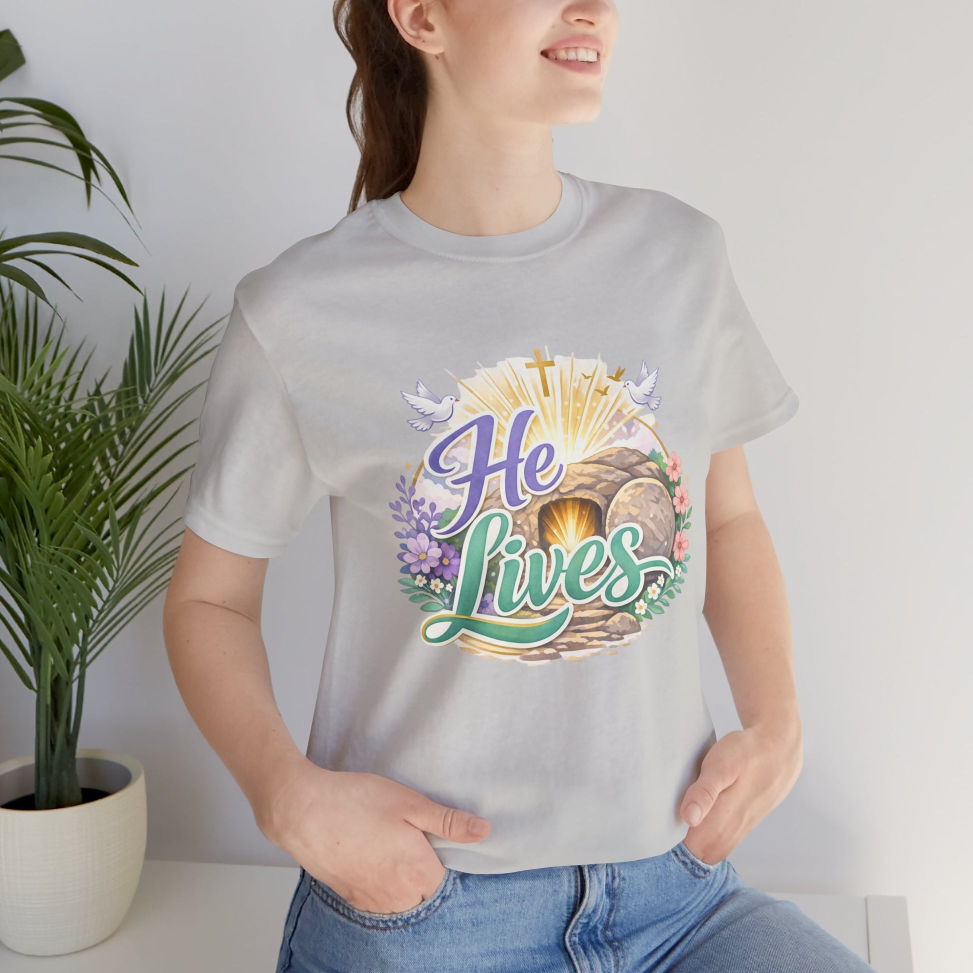 He Lives Jesus Tomb Tee — Christian Easter T‑Shirt