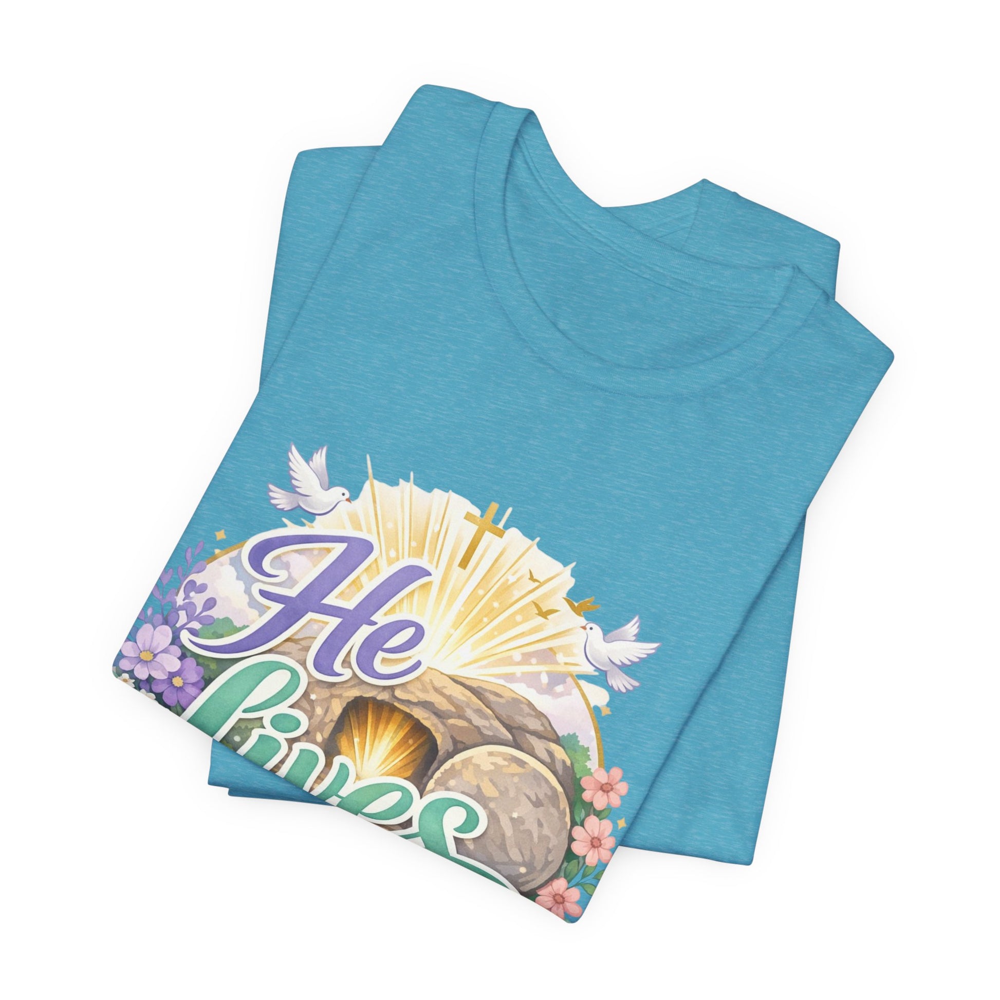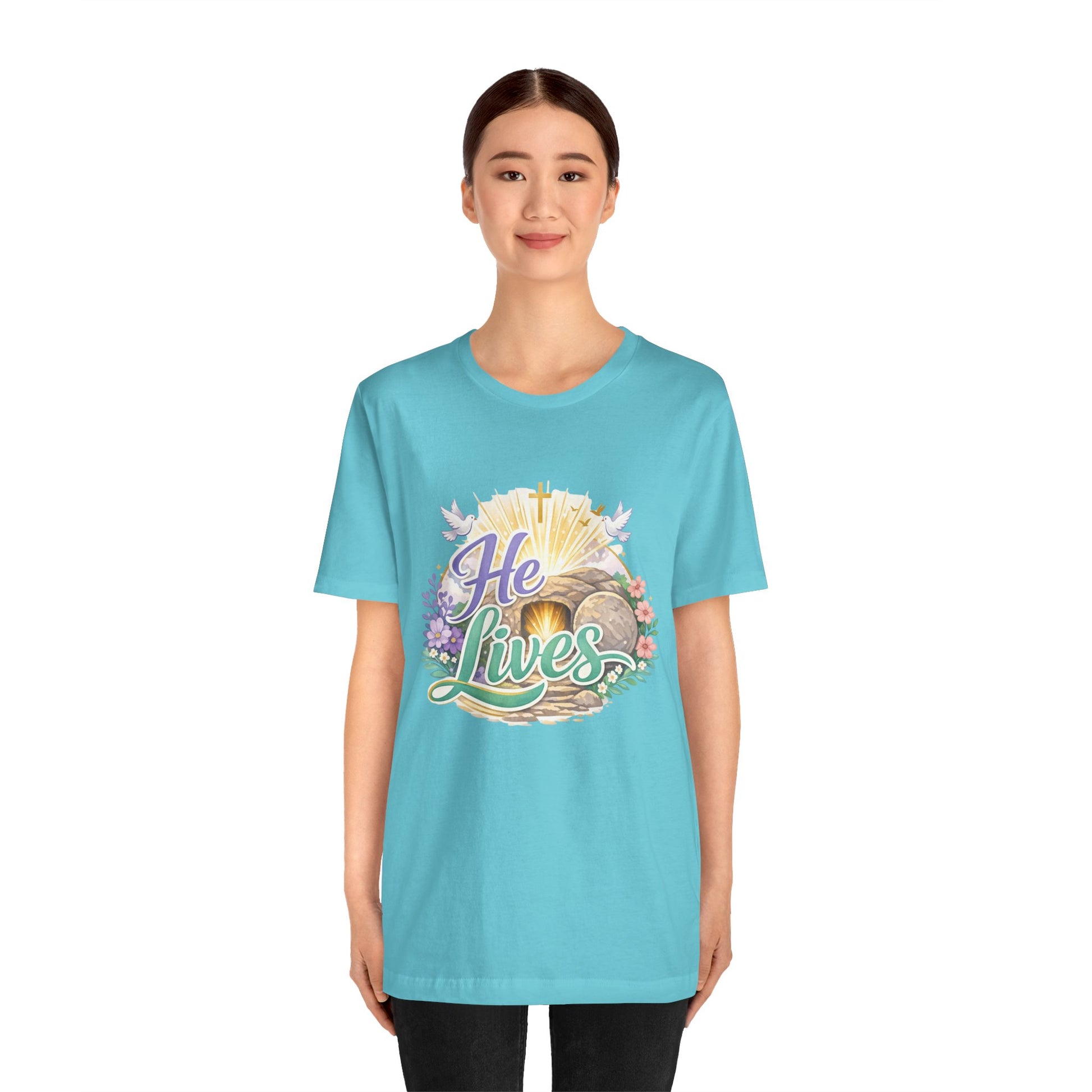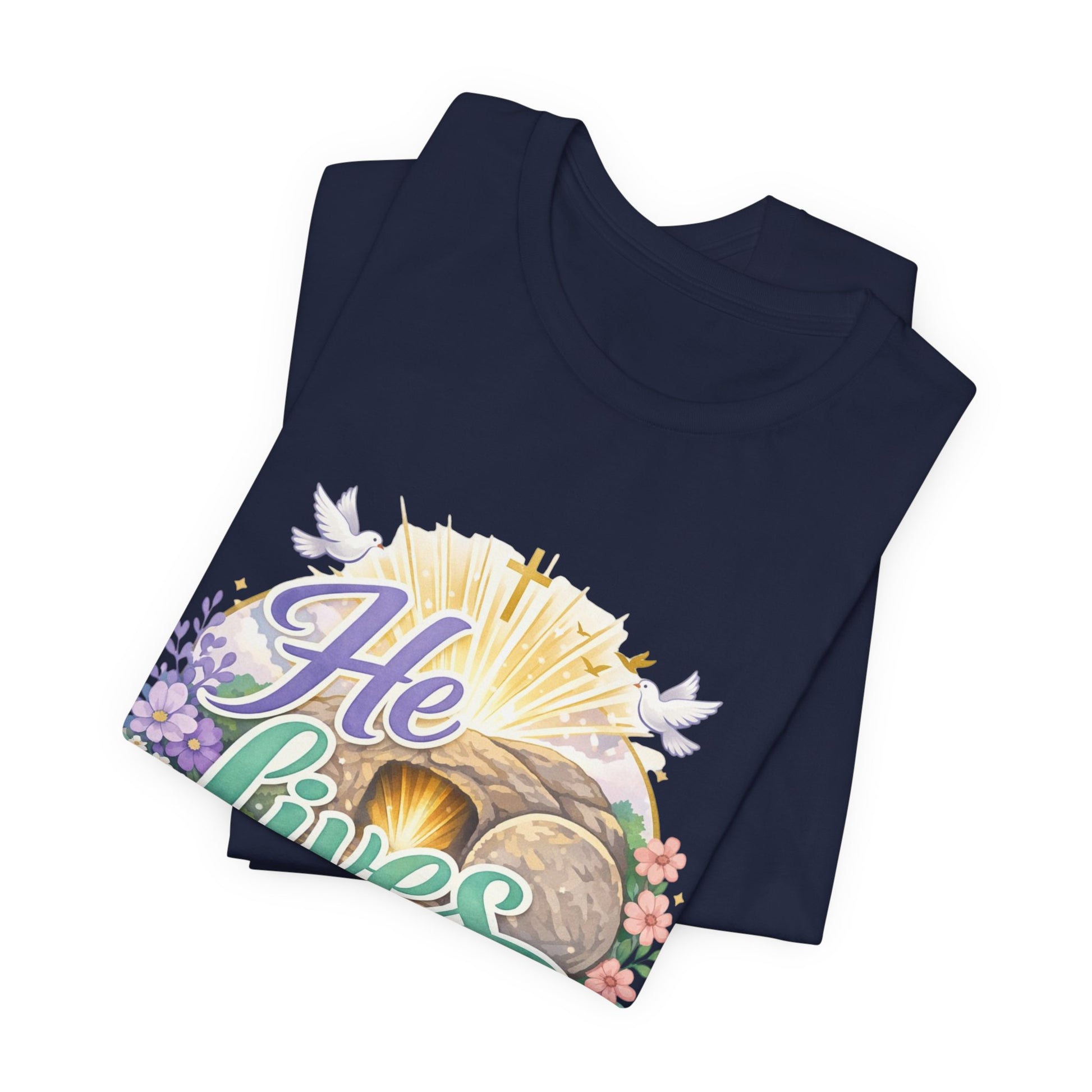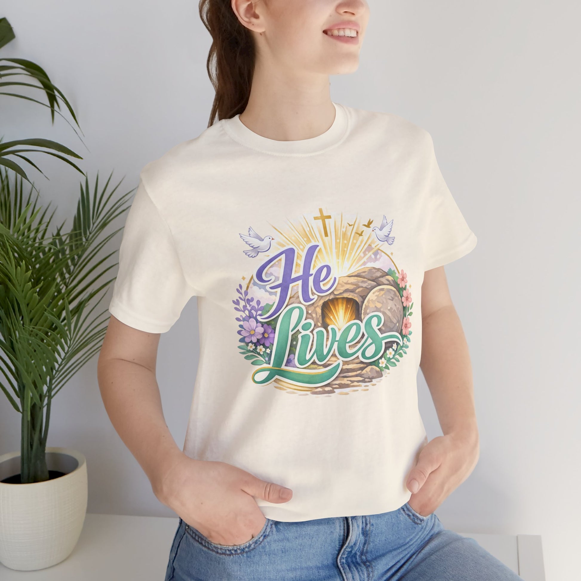 He Lives Jesus Tomb Tee — Christian Easter T‑Shirt