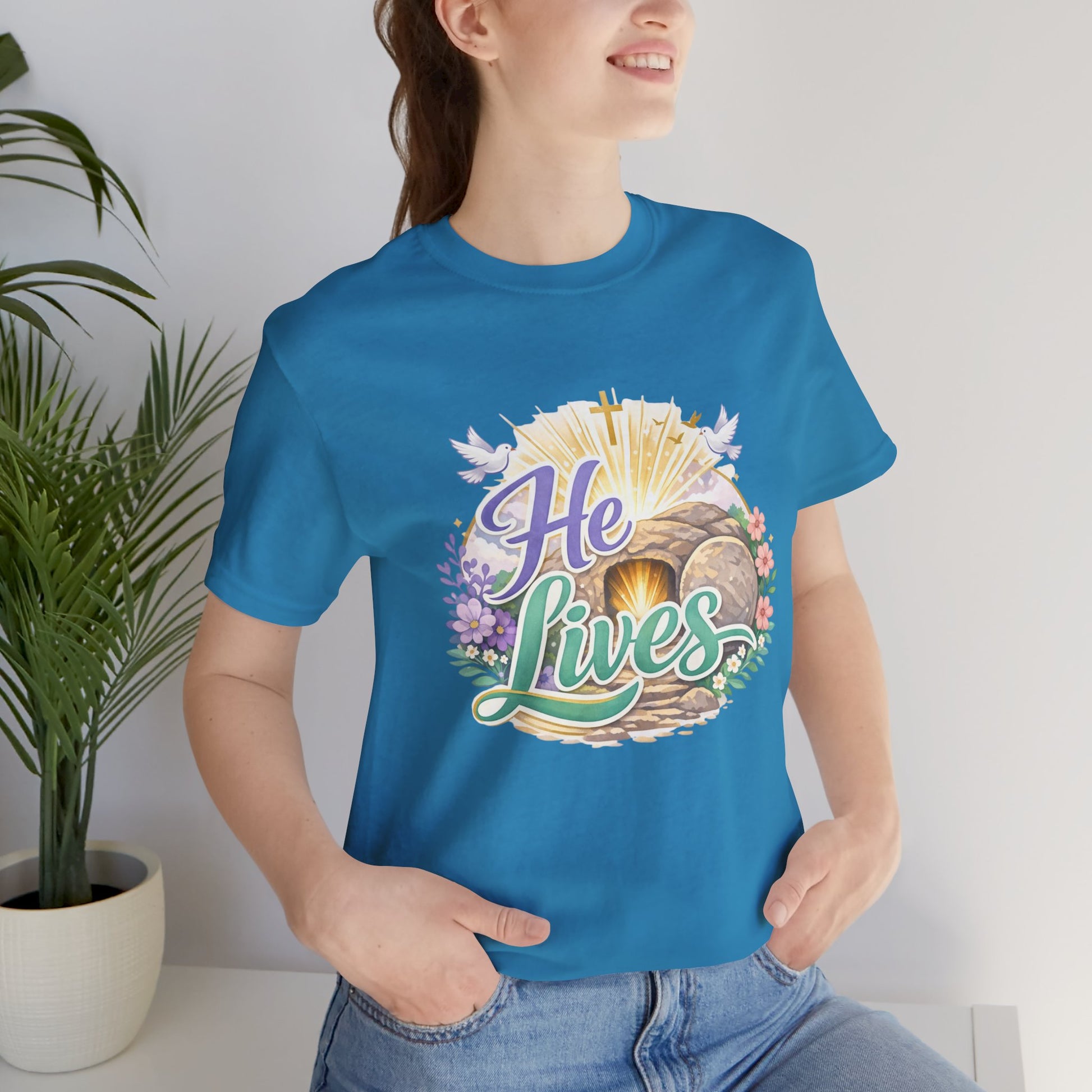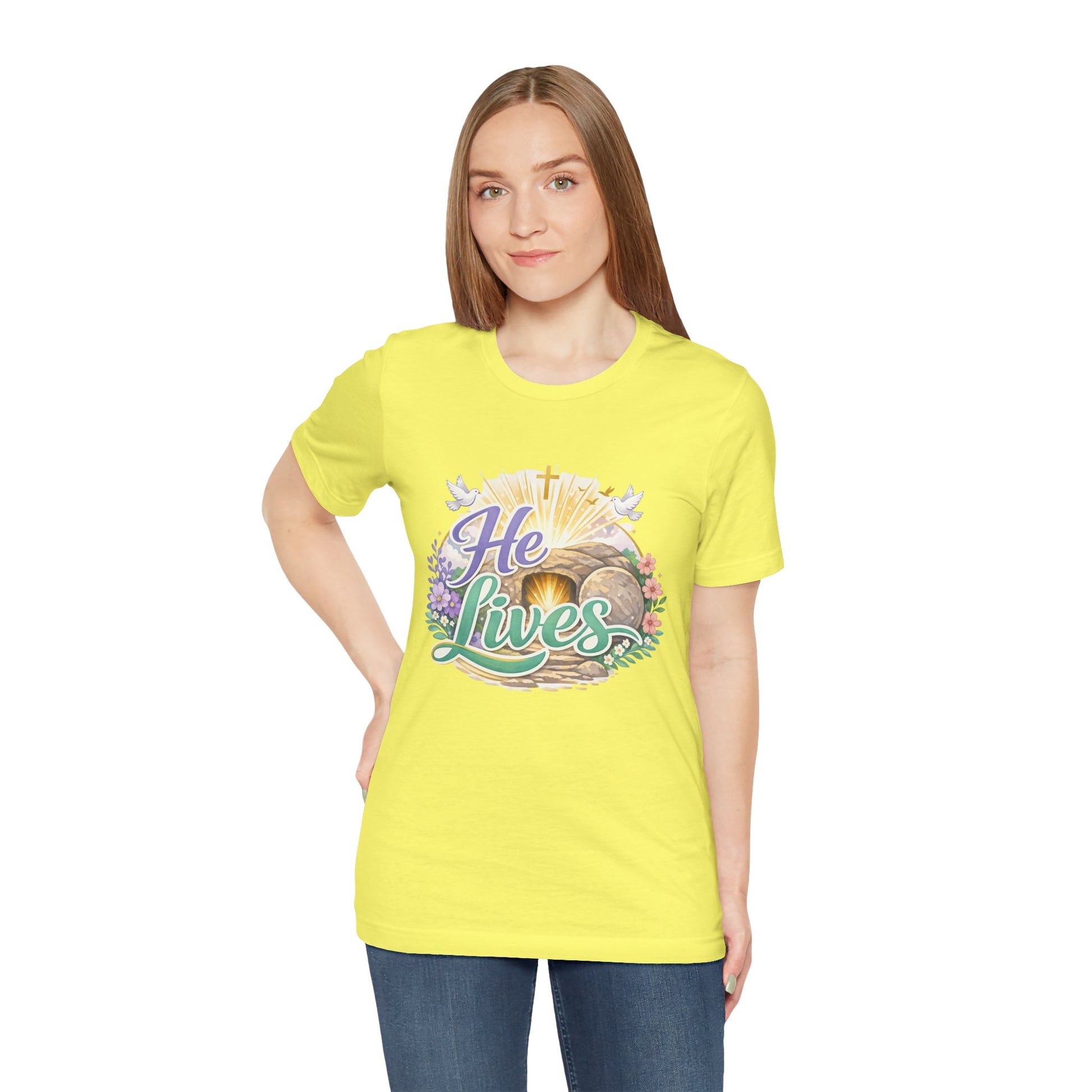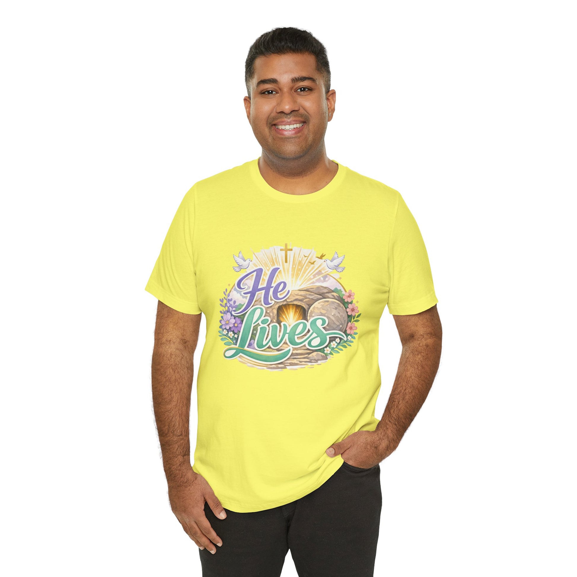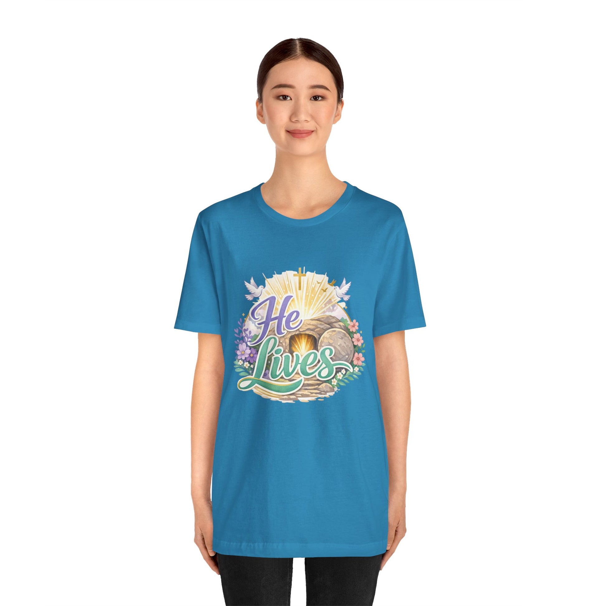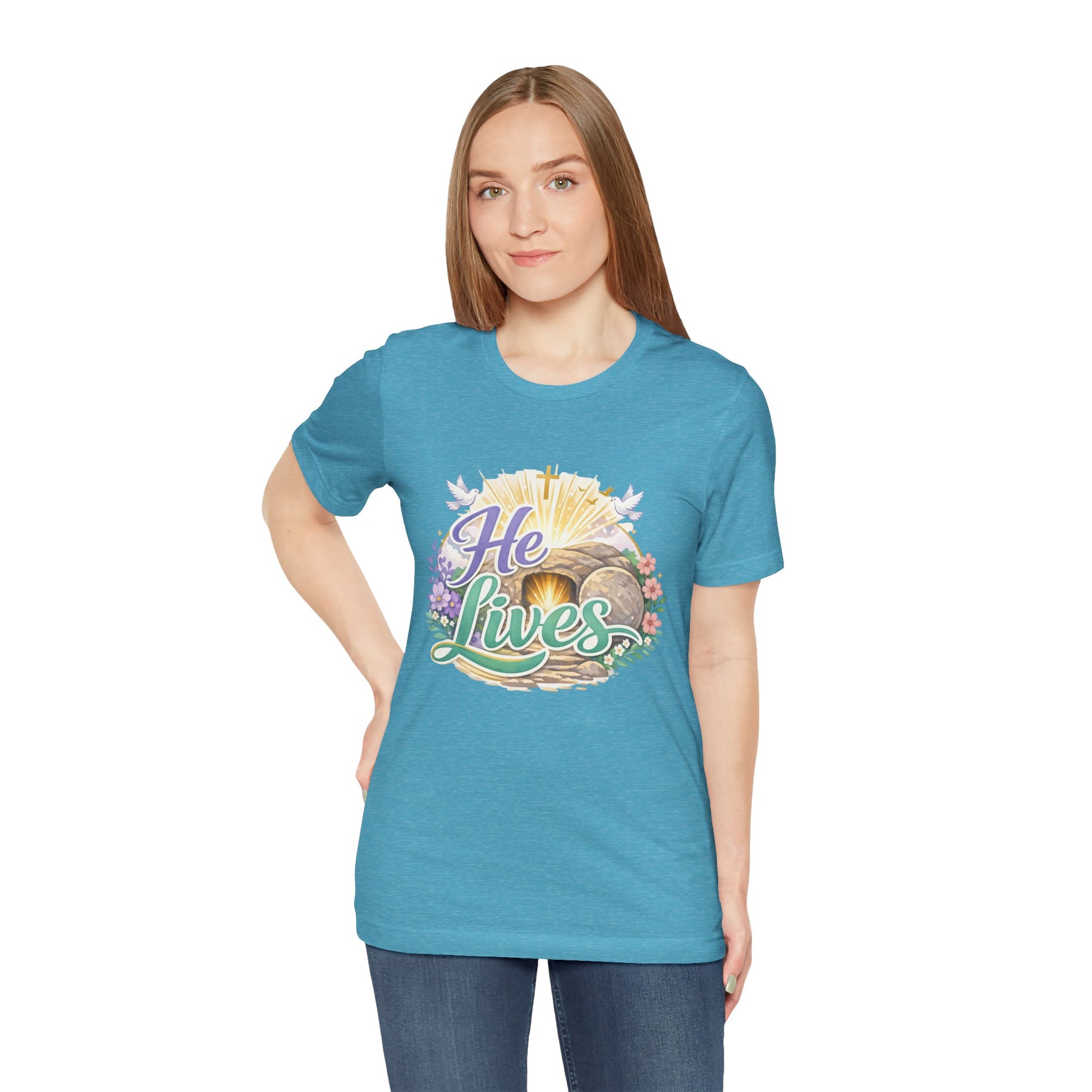 He Lives Jesus Tomb Tee — Christian Easter T‑Shirt