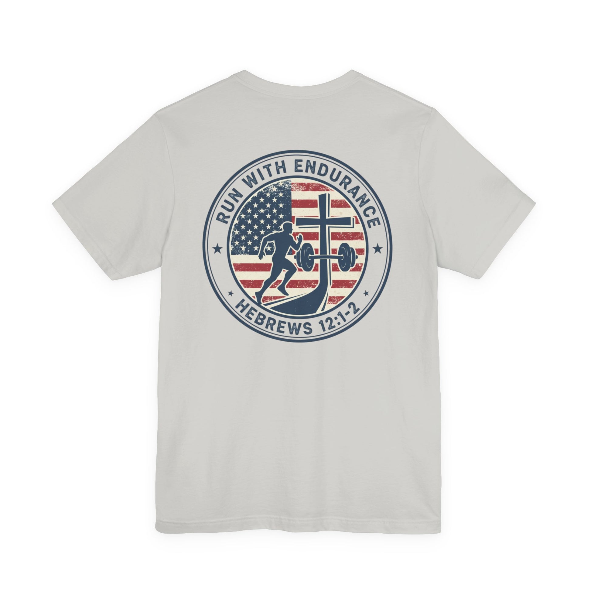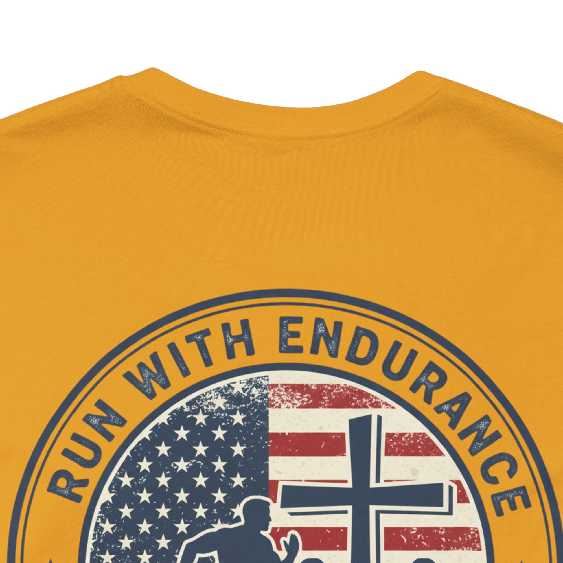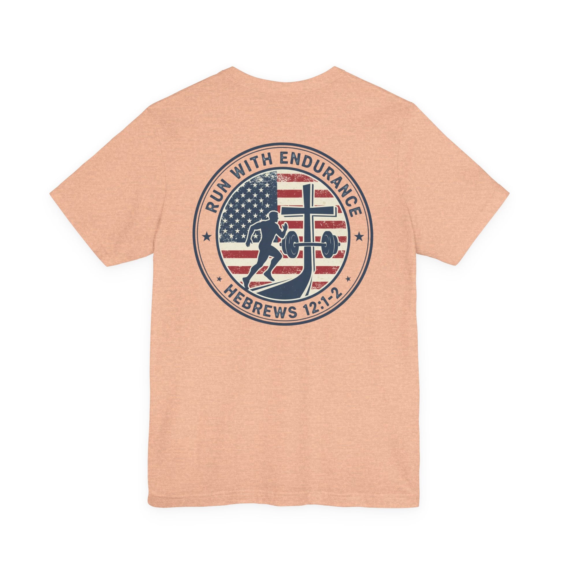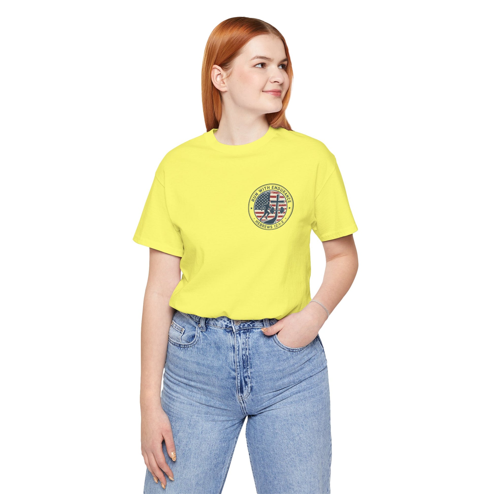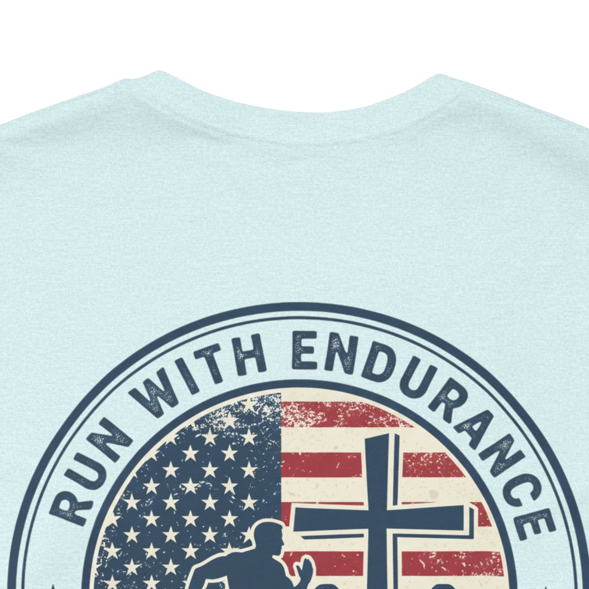 Hebrews 12:1-2 'Run With Endurance' T-Shirt — Inspirational Christian Tee