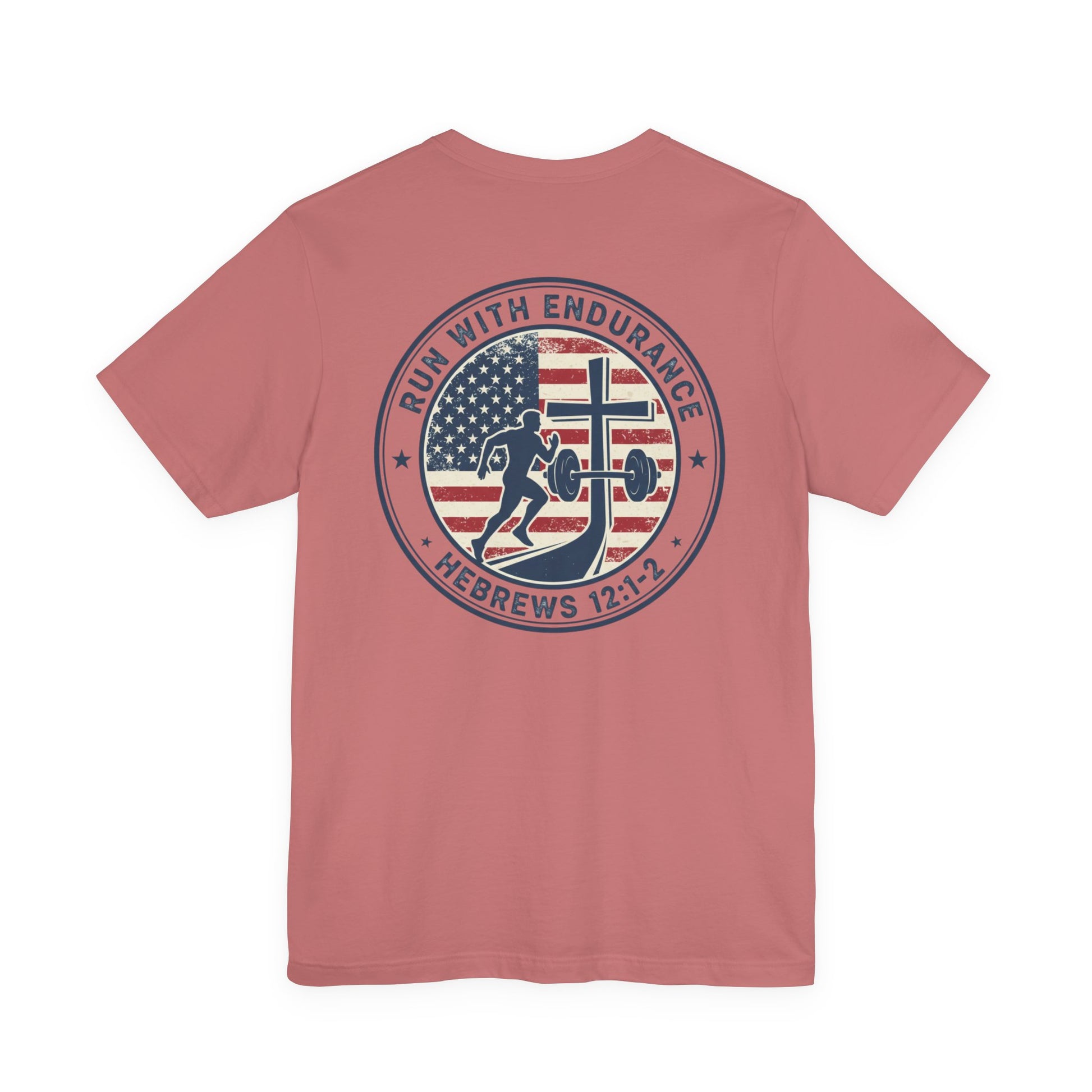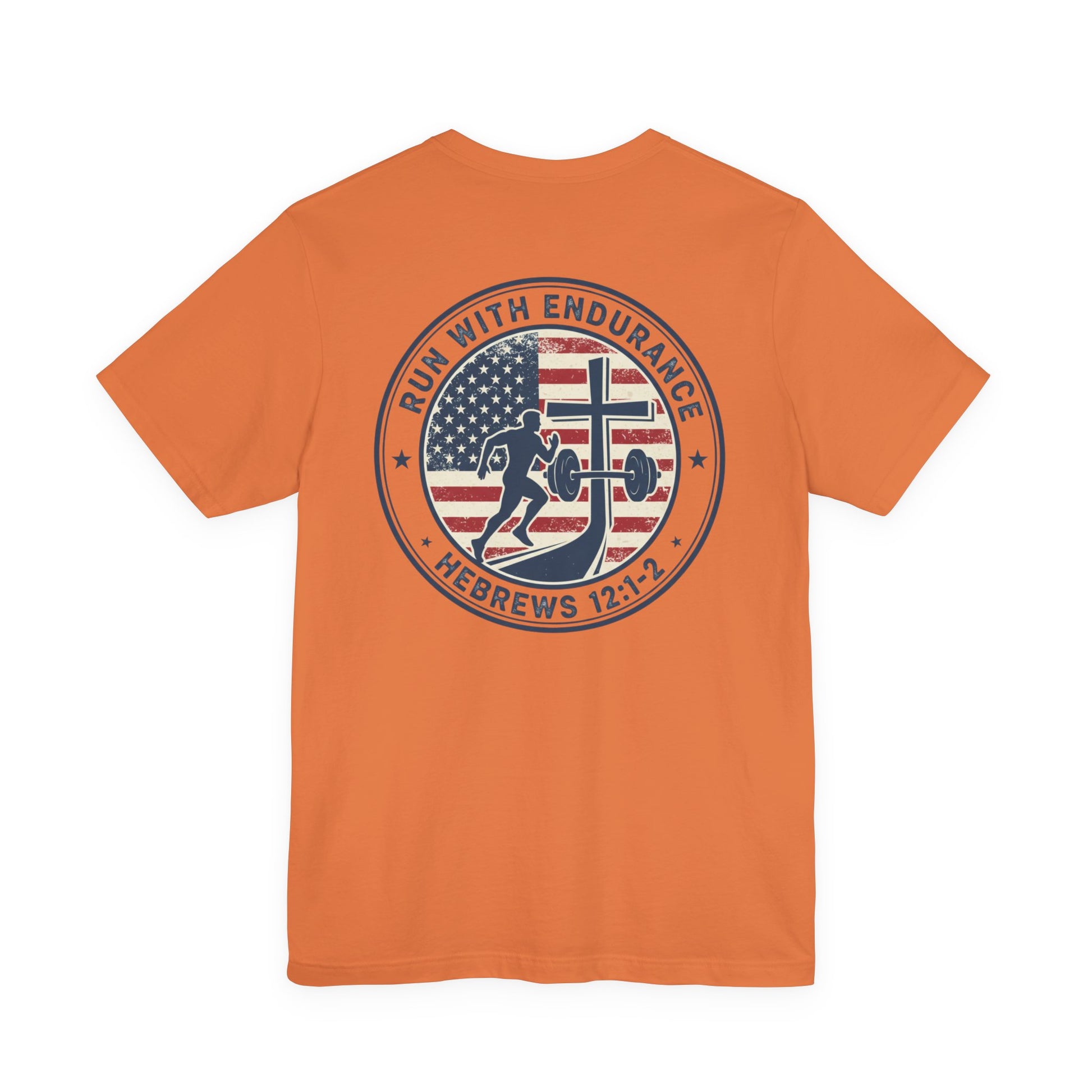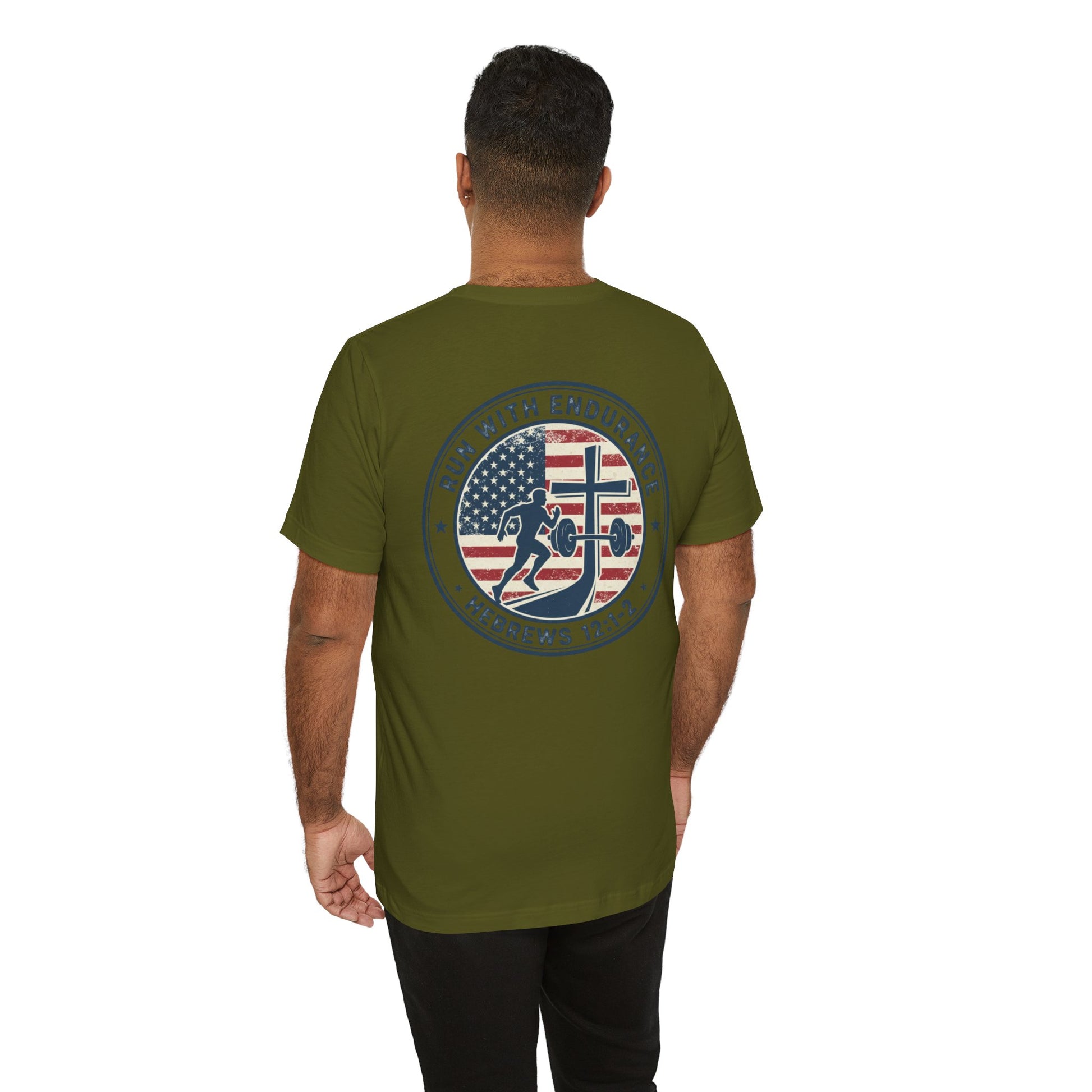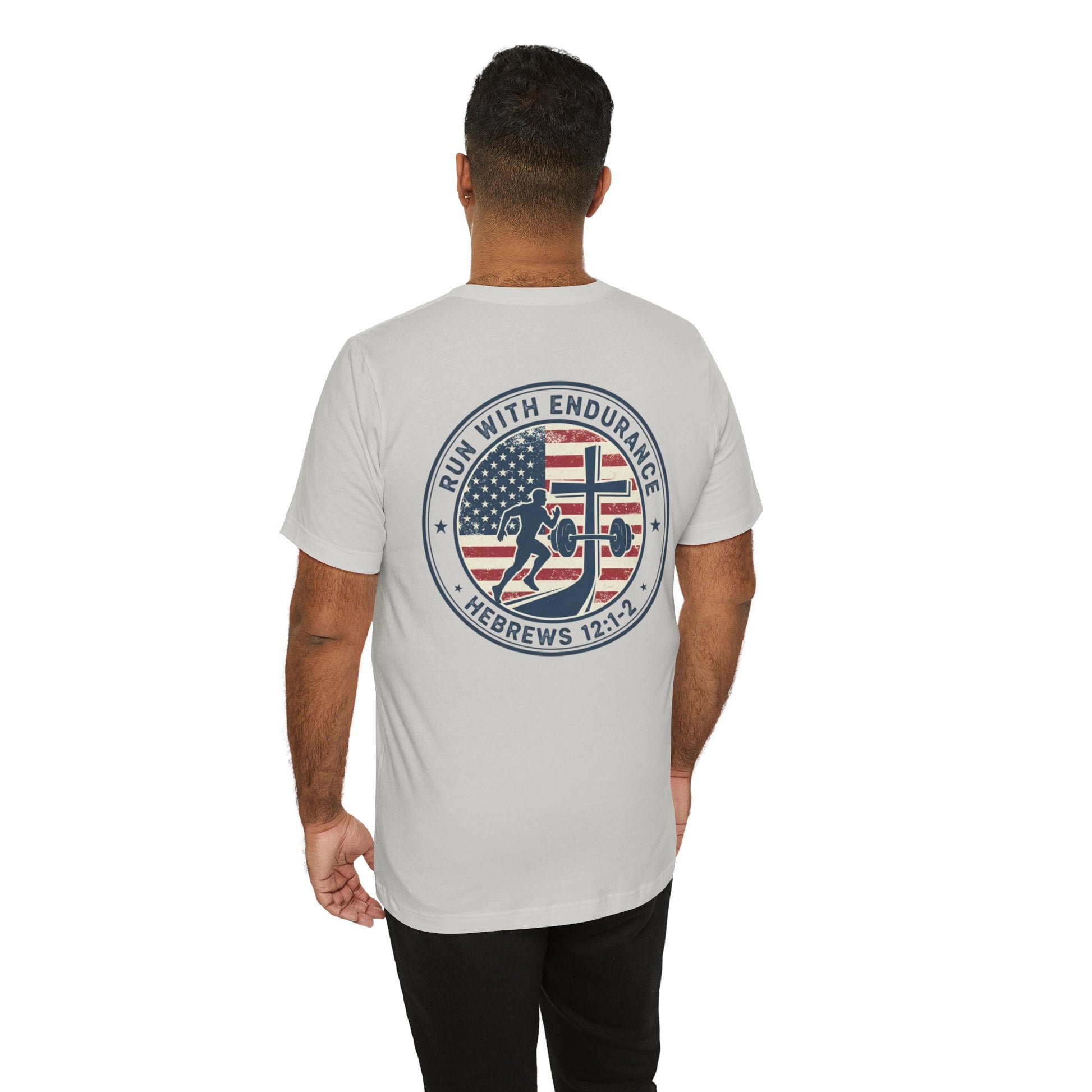 Hebrews 12:1-2 'Run With Endurance' T-Shirt — Inspirational Christian Tee