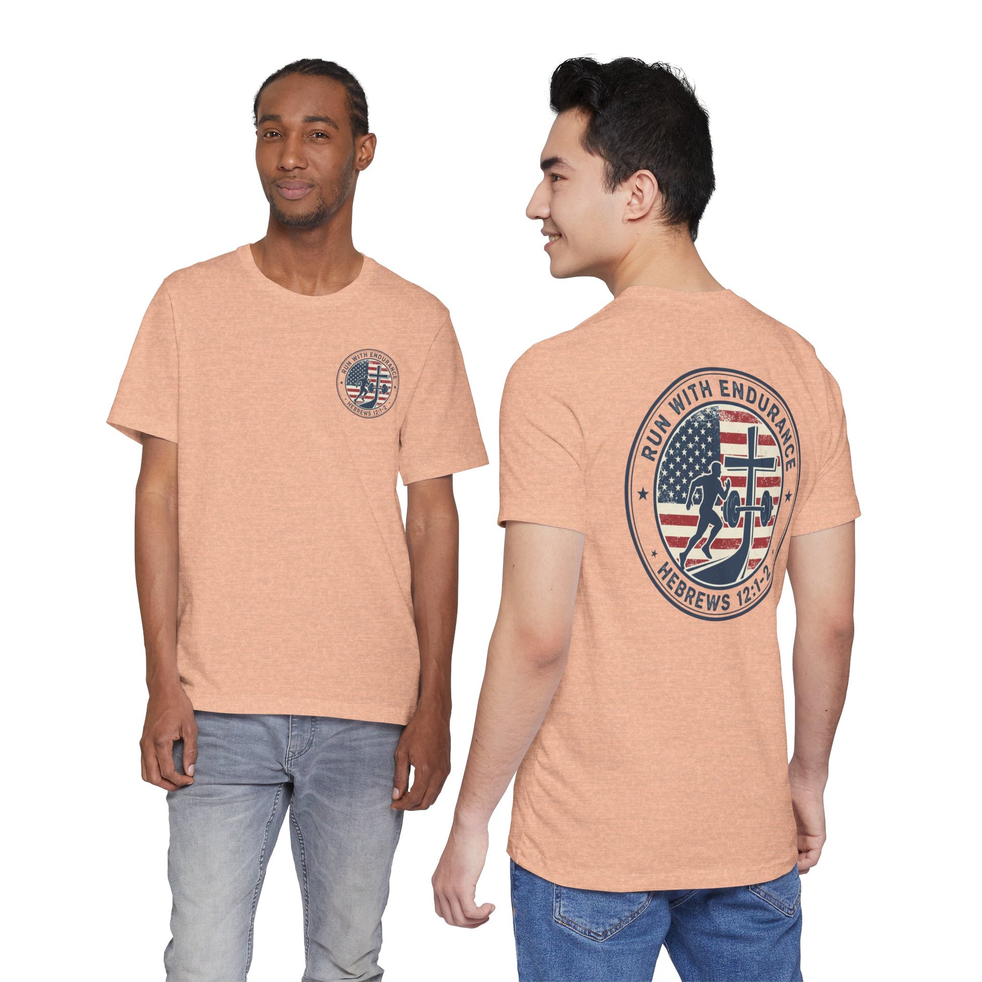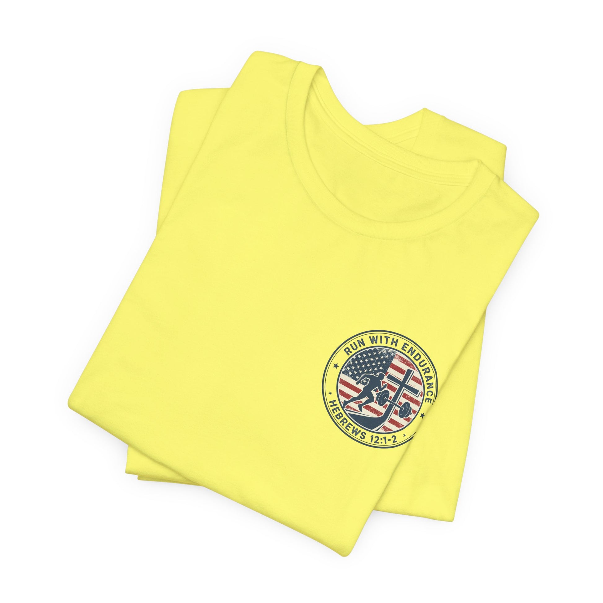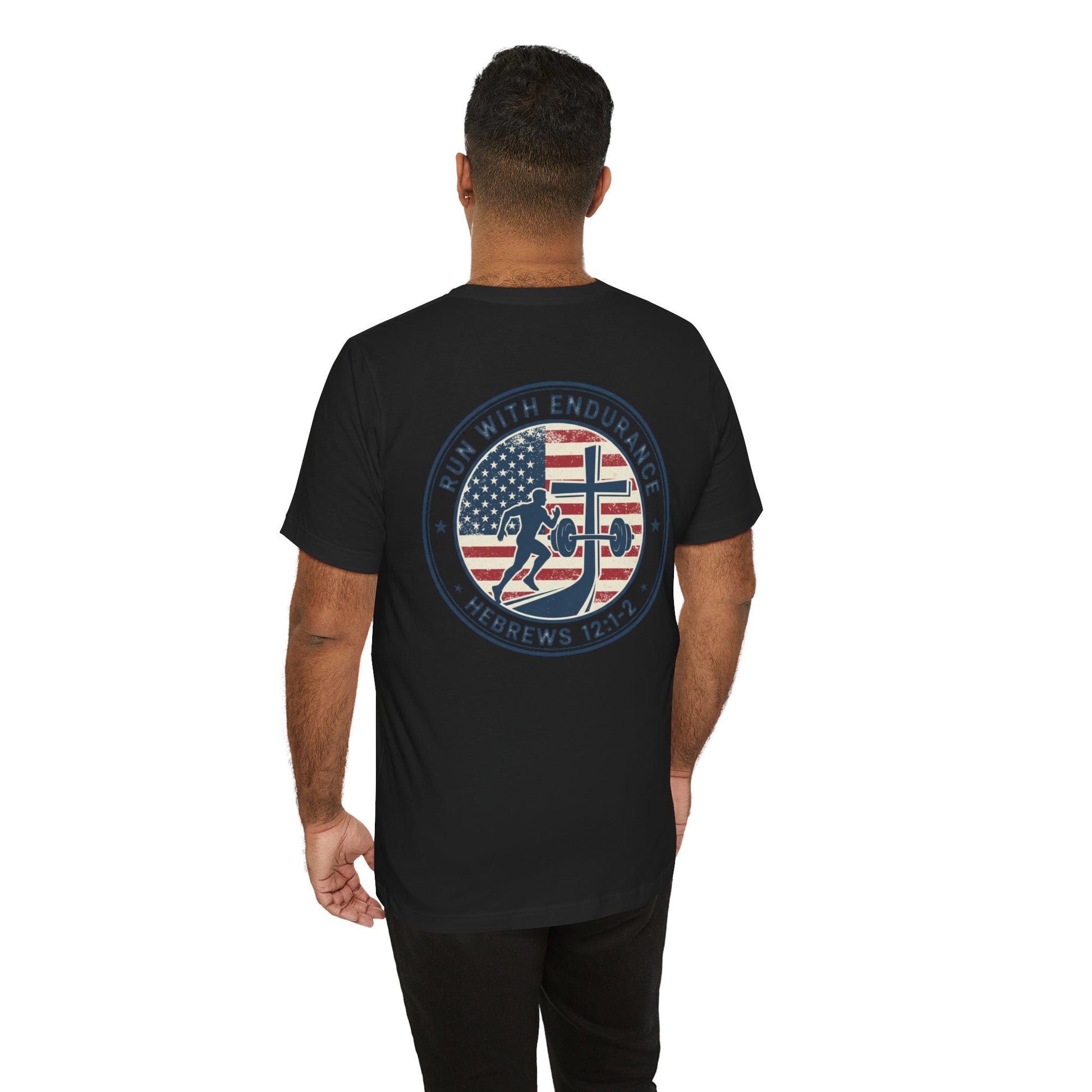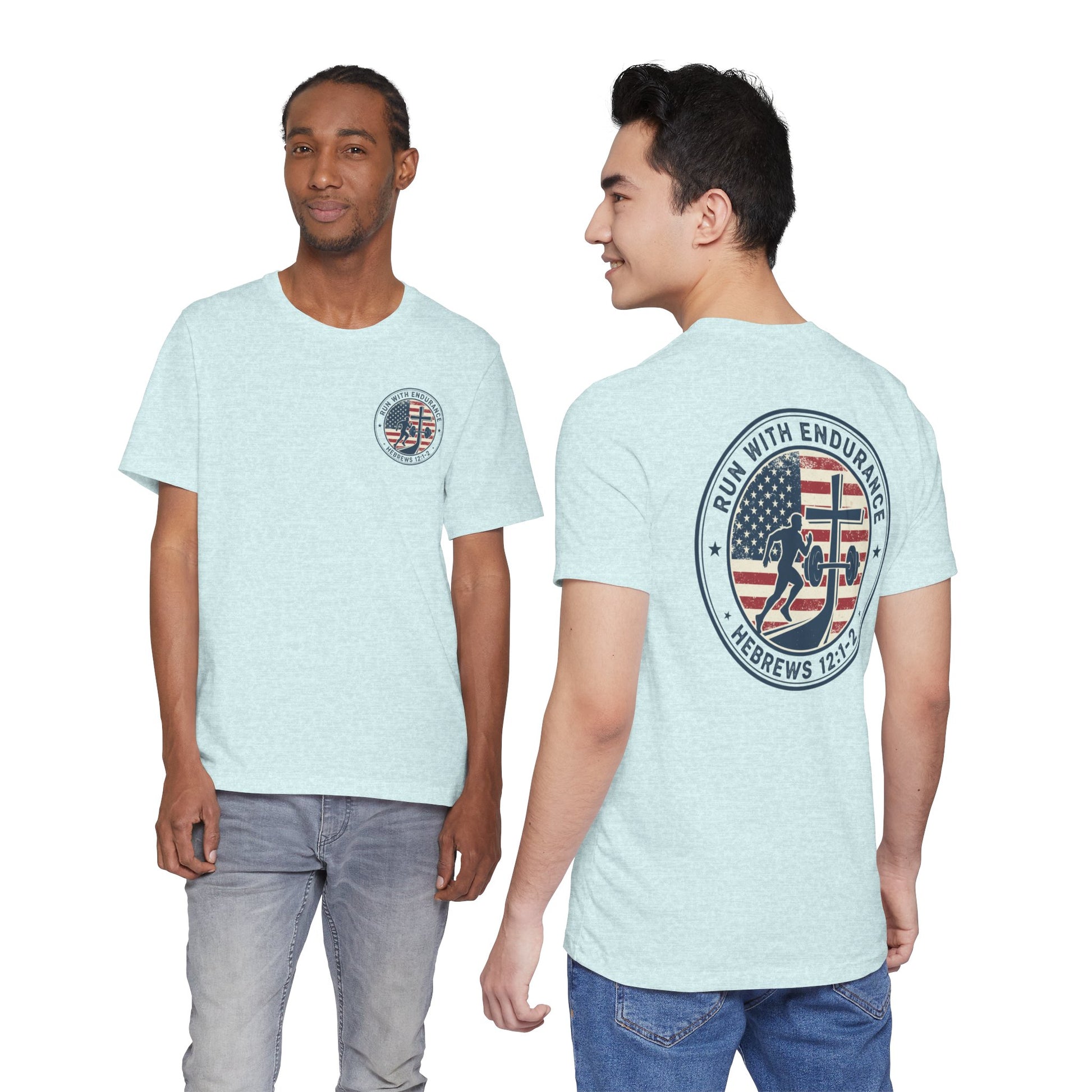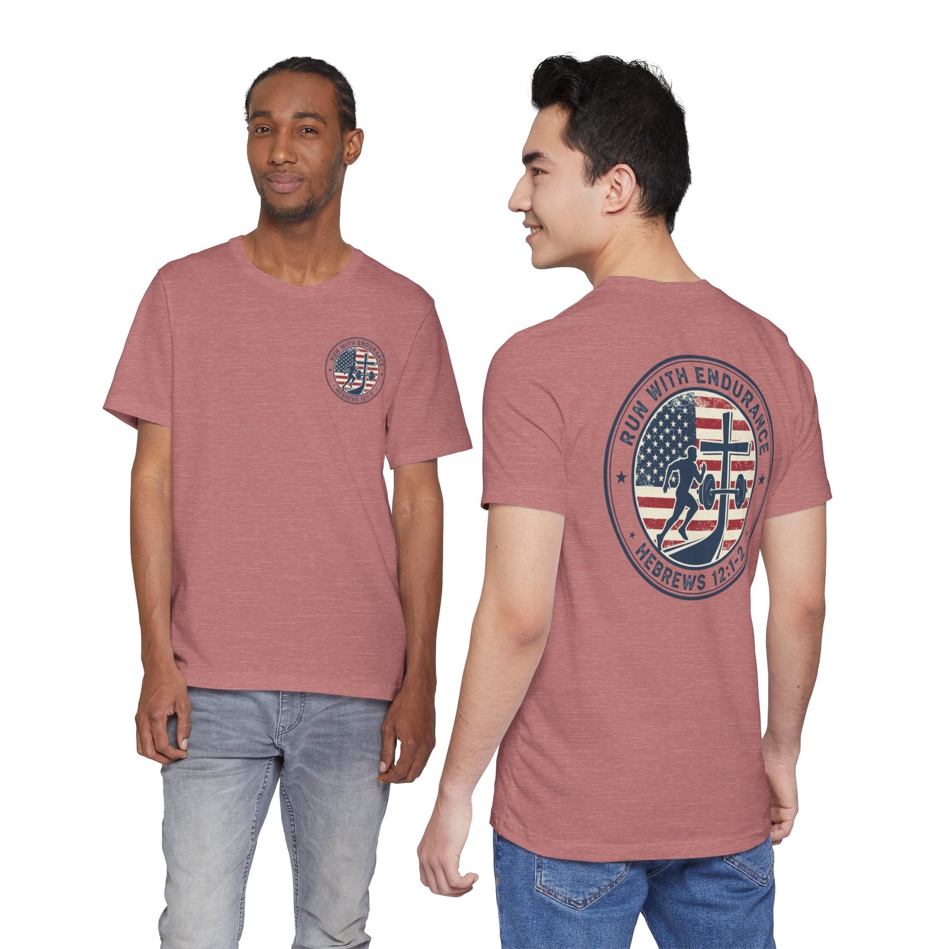 Hebrews 12:1-2 'Run With Endurance' T-Shirt — Inspirational Christian Tee