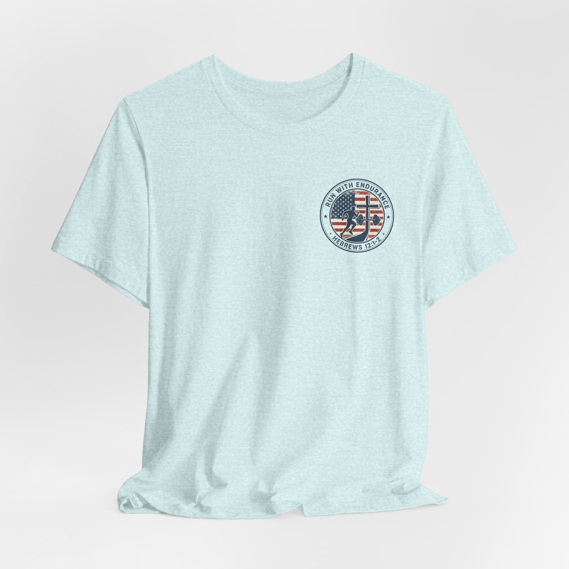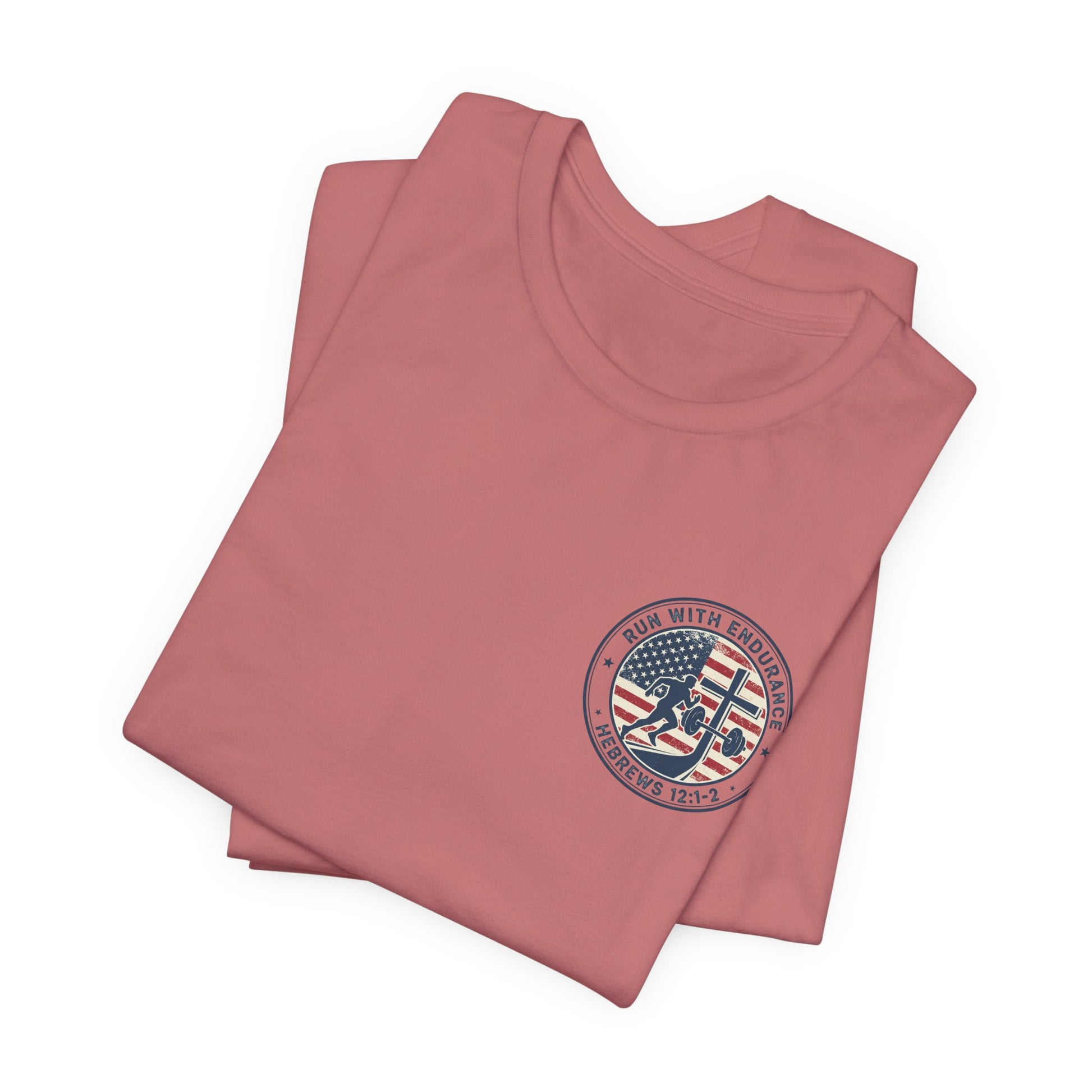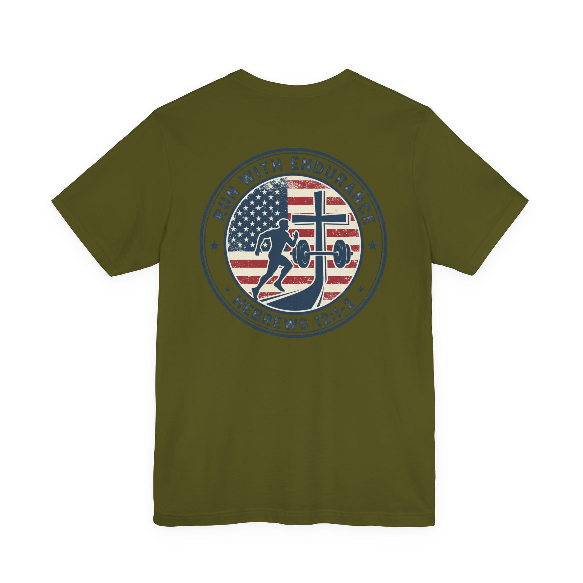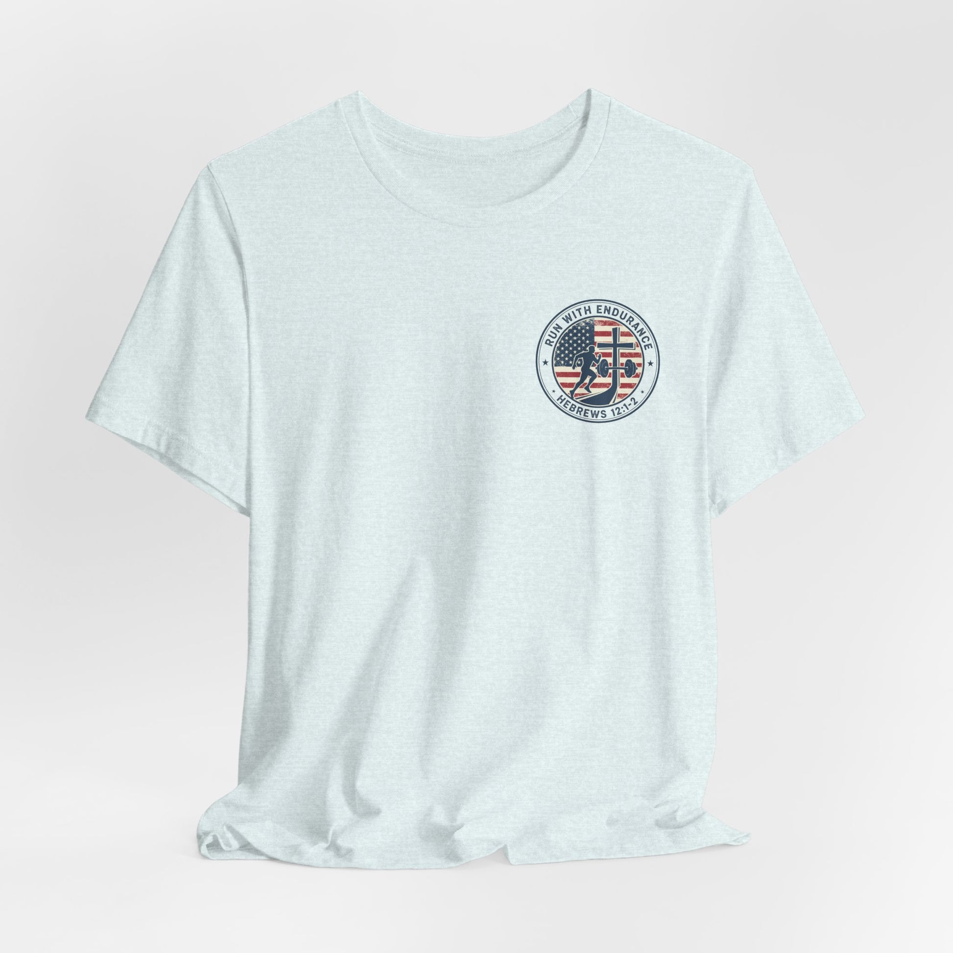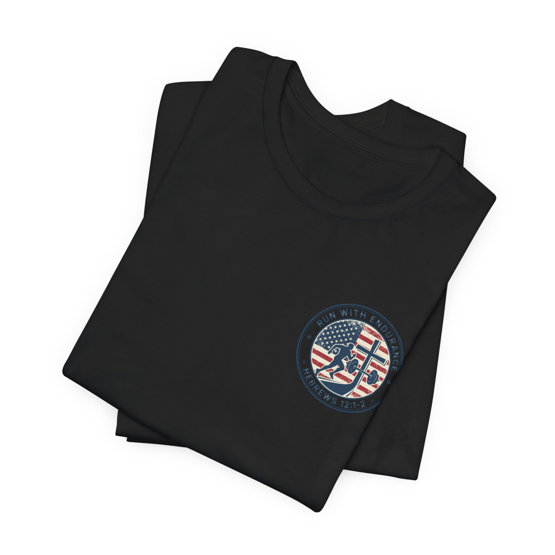 Hebrews 12:1-2 'Run With Endurance' T-Shirt — Inspirational Christian Tee
