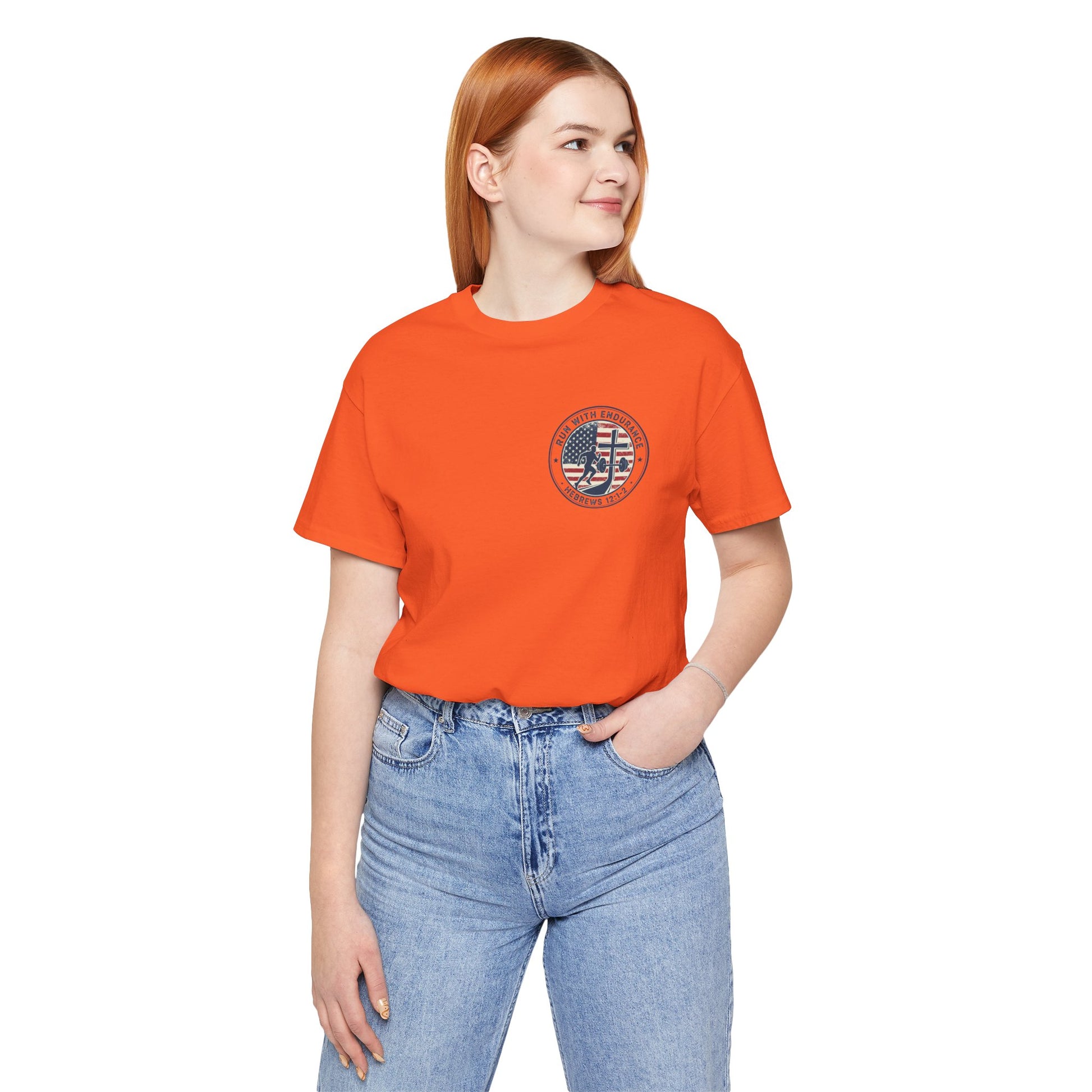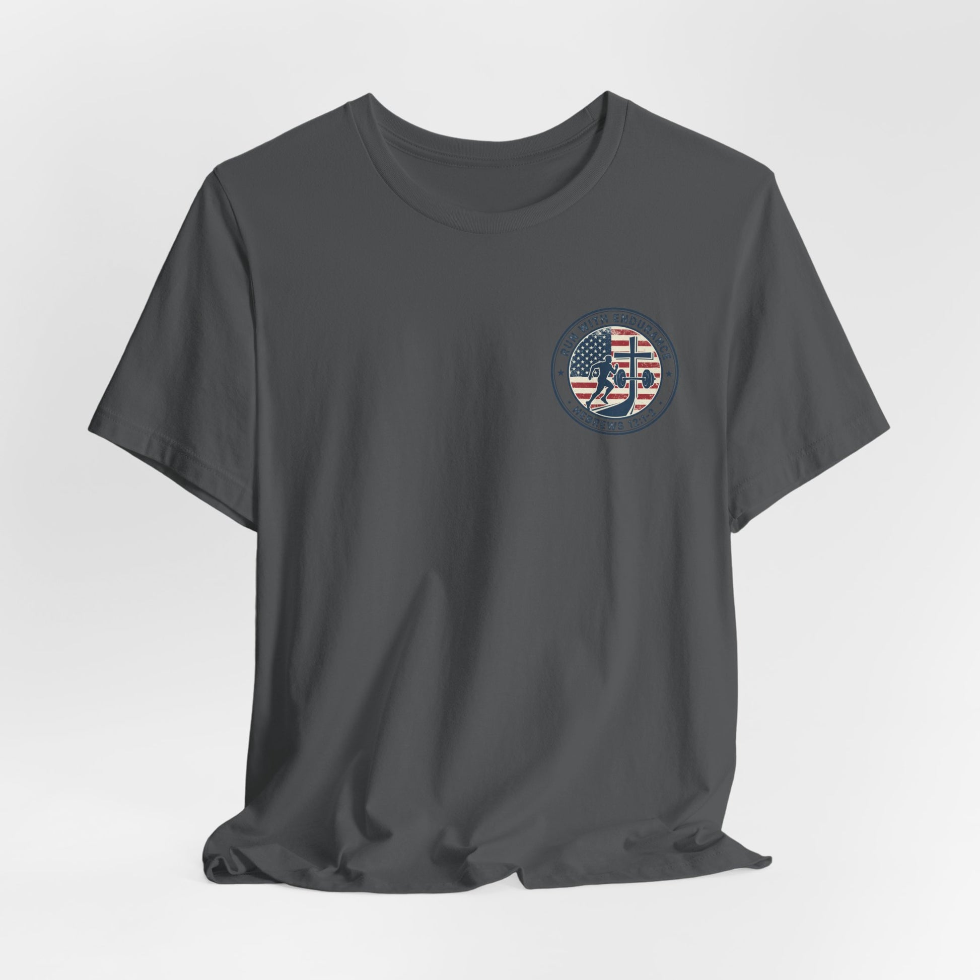 Wear this tee like a quiet declaration. The front bears Hebrews 12:1-2 — a call to run with endurance and to keep eyes fixed on what matters. Lightweight and breathable, the cotton body moves with you through early morning runs, church retreats, and everyday errands. It sits clean and simple under a hoodie or on its own, a subtle witness that doesn’t shout but holds steady. Imagine tying your shoes at dawn, breath fogging the air, and feeling steady resolve settle in your chest as you step forward. That’s the space this shirt creates: calm focus, faithful persistence, and everyday courage.