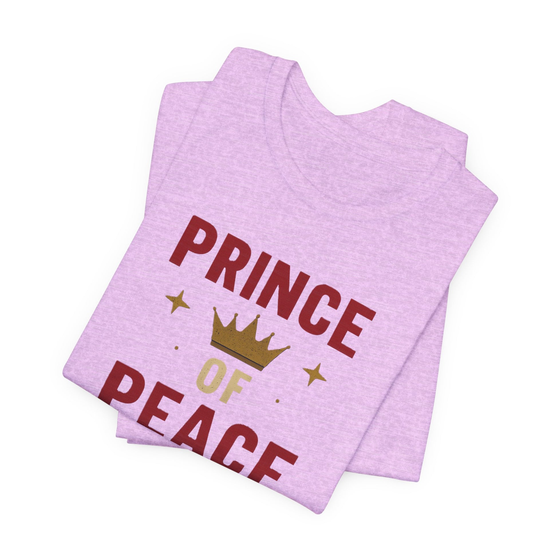 This lightweight jersey tee carries the Isaiah 9:6 “Prince of Peace” verse with quiet confidence. Soft, breathable Airlume cotton drapes cleanly across the chest so the text reads clearly, while the relaxed retail fit layers easily under a jacket or over a long-sleeve on cool mornings. Wear it to church gatherings, study groups, or neighborhood meetups — it feels like a gentle reminder in conversation and prayer. The subtle, well-executed print and tidy crew neckline keep the focus on the message, making the shirt an unobtrusive, heartfelt way to share faith.