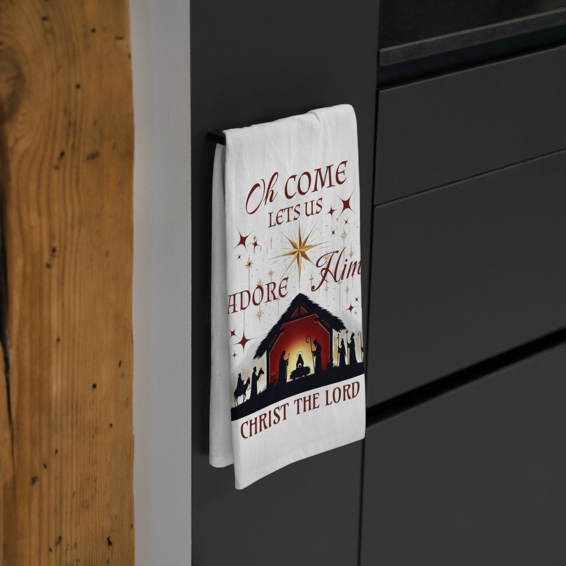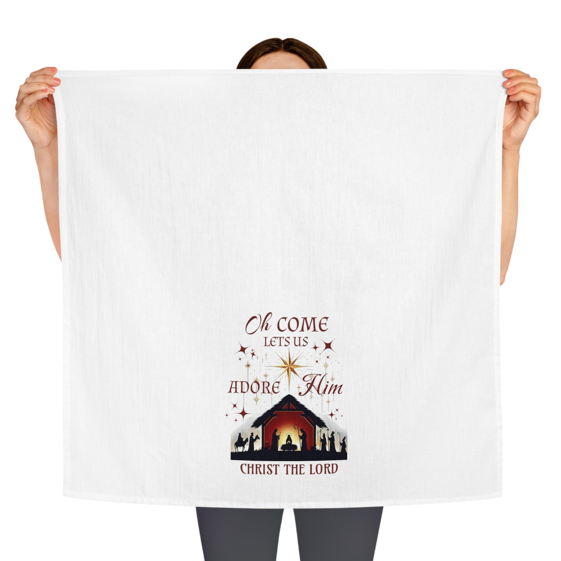 Tea Towel Nativity Scene Adore Him Christ the Lord